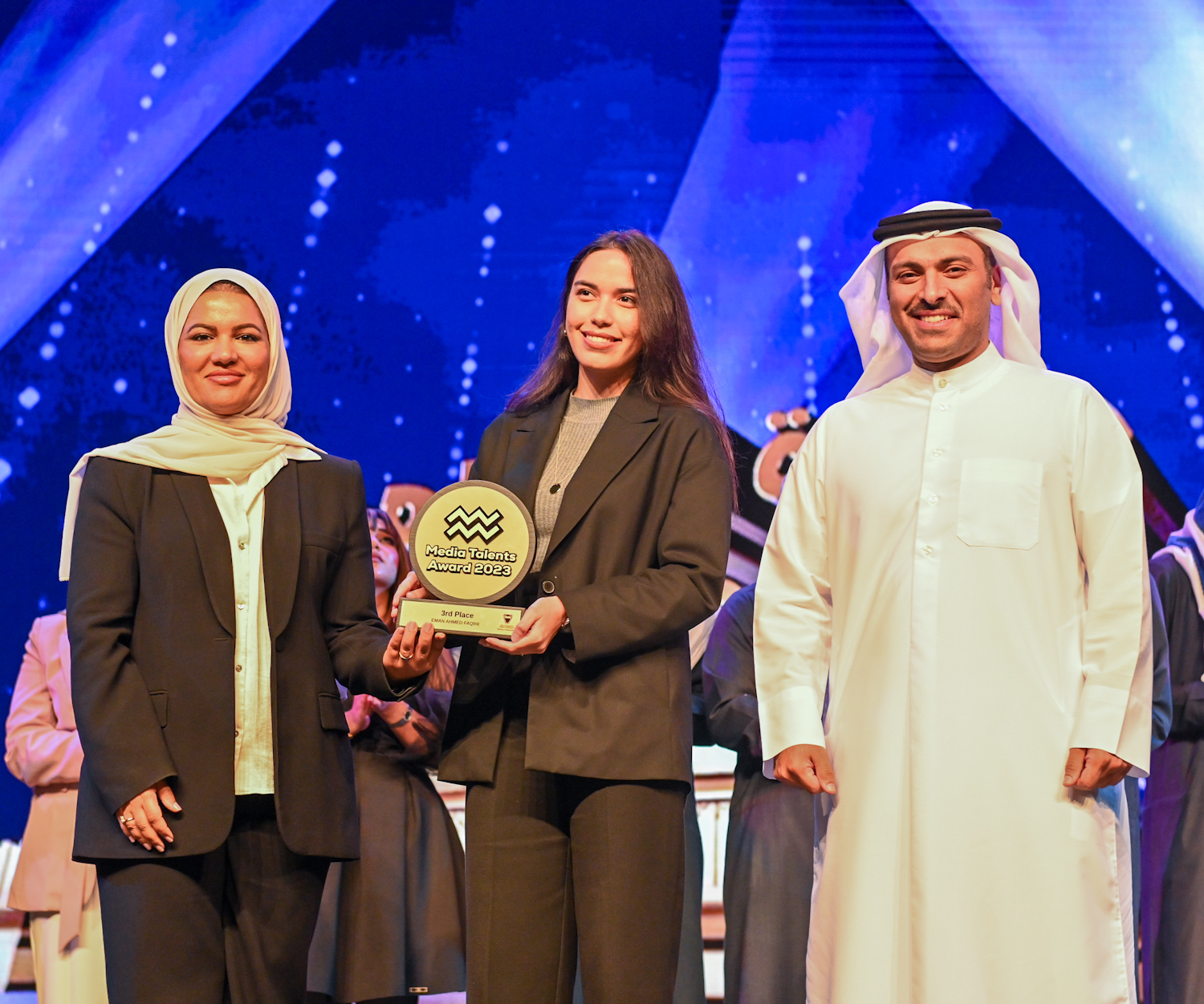 بعدها قام سعادة وزير الإعلام بتسليم الجوائز للفائزين بجائزة المواهب الإعلامية 2023، حيث فاز بجائزة المسابقة الأولى في مجال الإعداد والتقديم باللغة العربية كل من منيرة عقيل الشيخ والتي جاءت في المركز الأول، فيما حقق جاسم خالد الجاسم المركز الثاني، وحلت رابية إبراهيم البلوشي في المركز الثالث، أما المسابقة الثانية في مجال الإعداد والتقديم باللغة الإنجليزية فقد فاز بالمركز الأول فيها أحمد عاطف عاشور، وجاء KIKELOMO ATINUKE OPARAH في المركز الثاني، وحل بالمركز الثالث إيمان أحمد فقيهي.